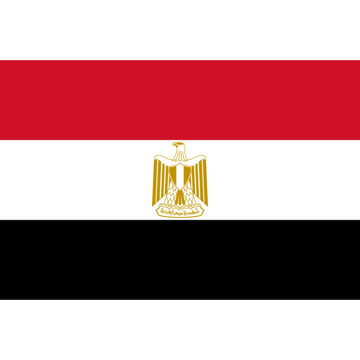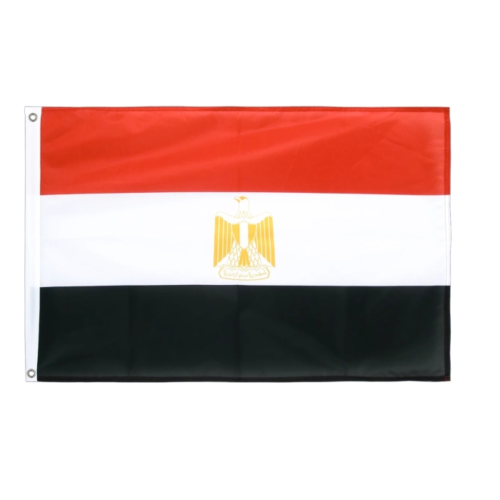 Флаг Египта имеет прямоугольную форму с соотношением сторон 2:3. Он состоит из трёх горизонтальных полос одинаковой ширины: верхняя полоса – красная, средняя полоса – белая, нижняя полоса – чёрная. В центре белой полосы находится герб Египта – Золотой орёл Салаха ад-Дина.Подробнее
