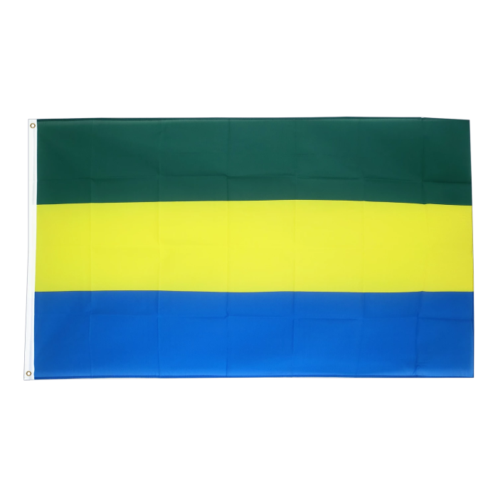 Флаг Габона выполнен из полиэфирной ткани, обладающей отличными эксплуатационными характеристиками. Он устойчив к внешним факторам, легко окрашивается и сохраняет насыщенные цвета даже при длительном использовании. Легкость ткани способствует удобному поднятию флага и предотвращает его ускоренный износ, особенно в ветреных условиях. Флаг Габона представлен в традиционной расцветке: три горизонтальные полосы — зеленая, желтая и синяя. Зеленый цвет символизирует лесные богатства страны, желтый — экваториальное солнце и процветание, а синий — водные ресурсы и Атлантический океан. Флаг предназначен для идентификации судов при заходе в порт Либревиль (Port of Libreville) и порт Порт-Жантиль (Port of Port Gentil), соответствуя международным требованиям и обеспечивая их узнаваемость в морских перевозках-