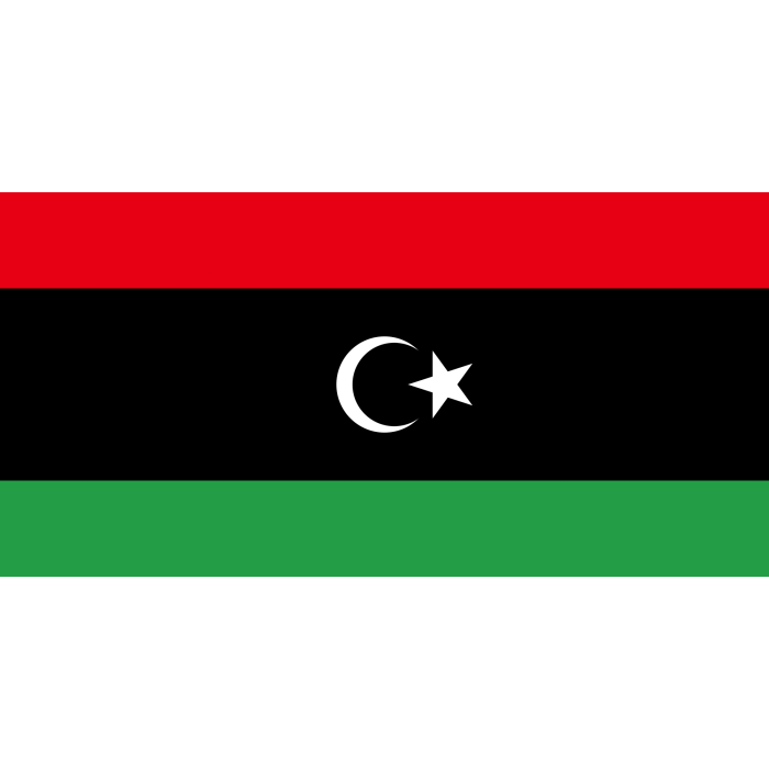 Флаг Ливии выполнен из полиэфирной ткани, обладающей отличными эксплуатационными характеристиками. Он устойчив к внешним факторам, легко окрашивается и сохраняет насыщенные цвета даже при длительном использовании. Легкость ткани позволяет удобно поднять флаг, а его прочность предотвращает ускоренный износ, особенно в условиях сильного ветра. Флаг Ливии представлен в традиционной расцветке: три горизонтальные полосы — черная, красная и зеленая, с белым полумесяцем и звездой в центре. Черный цвет символизирует прошлое страны, красный — борьбу за независимость, зеленый — надежду и процветание, а белые элементы — исламскую традицию. Флаг предназначен для идентификации судов при заходе в порт Аль-Хумс (Port of Al Khoms), порт Бенгази (Port of Benghazi), порт Мисурата (Port of Misrata) и порт Триполи (Port of Tripoli), соответствуя международным требованиям и обеспечивая их узнаваемость в морских перевозках.-