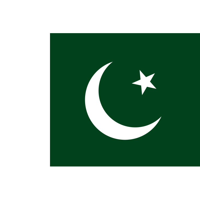 Для изготовления флага используется полиэфирная ткань с плотностью около 210 г/м². Этот материал обладает высокой прочностью и устойчивостью к ветру, осадкам и солнечному излучению. Он хорошо держит форму и легко окрашивается, что обеспечивает яркость и стойкость цветов даже при длительной эксплуатации. Лёгкость ткани способствует удобному поднятию флага и снижает его износ в ветреную погоду. Флаг Пакистана выполнен в соответствии с официальным государственным стандартом. Основное зелёное поле символизирует ислам и большинство населения страны, а белая вертикальная полоса у древка — религиозные меньшинства и стремление к миру. В центре зелёного поля размещён белый полумесяц и пятиконечная звезда — знаки прогресса и света. Все цветовые элементы нанесены чётко, краска устойчива к выгоранию и не теряет насыщенности со временем. Флаг подходит для использования при судозаходах в порт Карачи (Port of Karachi) — крупнейший морской порт Пакистана и важнейший торговый узел региона. Он соответствует требованиям международной морской идентификации и подходит для установки на судах, совершающих международные рейсы.