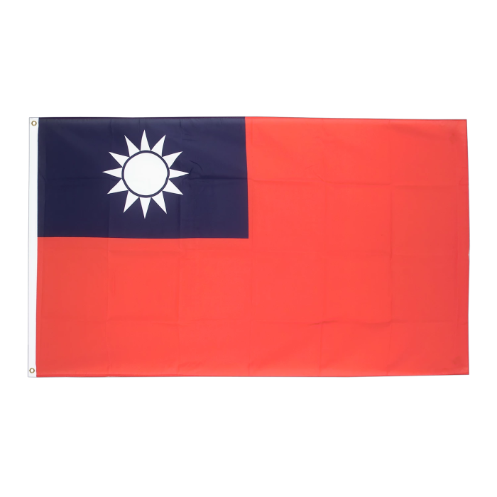 Для изготовления флага используется полиэфирная ткань с плотностью около 210 г/м². Этот материал обладает высокой прочностью и устойчивостью к воздействию внешней среды, включая влажность, ультрафиолет и механические нагрузки. Полиэфир легко поддаётся окрашиванию, благодаря чему флаг сохраняет насыщенные цвета даже при длительном использовании. Лёгкость материала упрощает его поднятие и снижает нагрузку на крепления при сильных порывах ветра. Флаг Тайваня выполнен в насыщенных и стойких цветах: основное поле флага — красное, в левом верхнем углу размещён синий прямоугольник с белым солнцем из двенадцати лучей. Красный цвет символизирует народ и братство, синий — свободу и справедливость, а белое солнце — свет и демократию. Все элементы выполнены с высокой точностью и соответствуют официальному государственному образцу. Флаг предназначен для использования при судозаходах в порты Тайваня: Порт Гаосюн (Port of Kaohsiung) Порт Тайбэй (Port of Taipei) Изделие соответствует международным морским стандартам и может использоваться на судах при заходе в тайваньские порты.