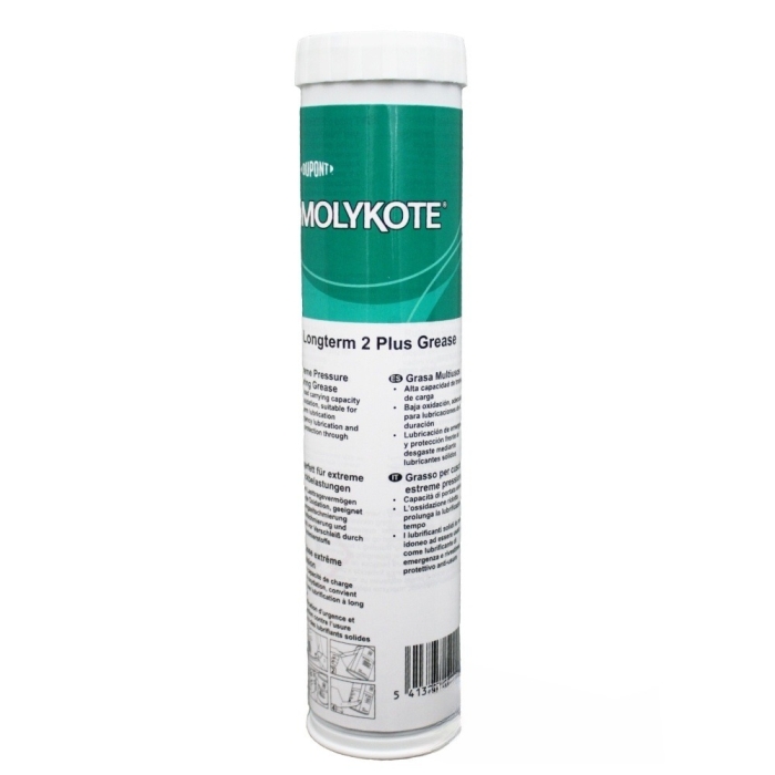 Смазка Molykote Longterm 2 Plus обеспечивает стабильную работу в диапазоне температур от -25 °C до +110 °C. Обладает высокой адгезией, не вымывается водой, устойчива к фреттинг-коррозии и подходит для использования в тяжелонагруженных узлах трения. За счёт наличия дисульфида молибдена и графита в составе демонстрирует отличные антифрикционные свойства.