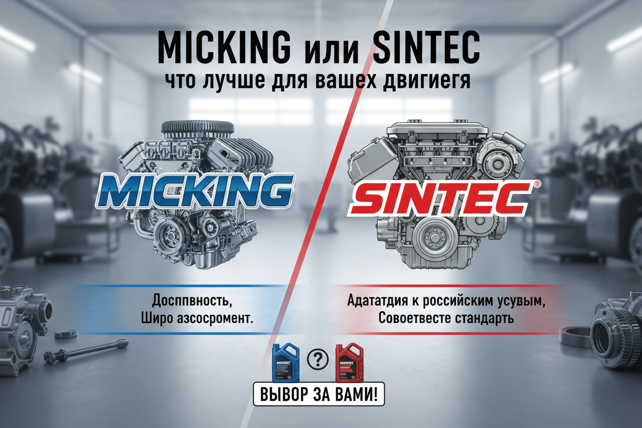 MICKING — устойчивость, защита, низкий расход, жаркие температуры. SINTEC — мягкость зимой, комфорт пуска, уверенная работа на холодную.