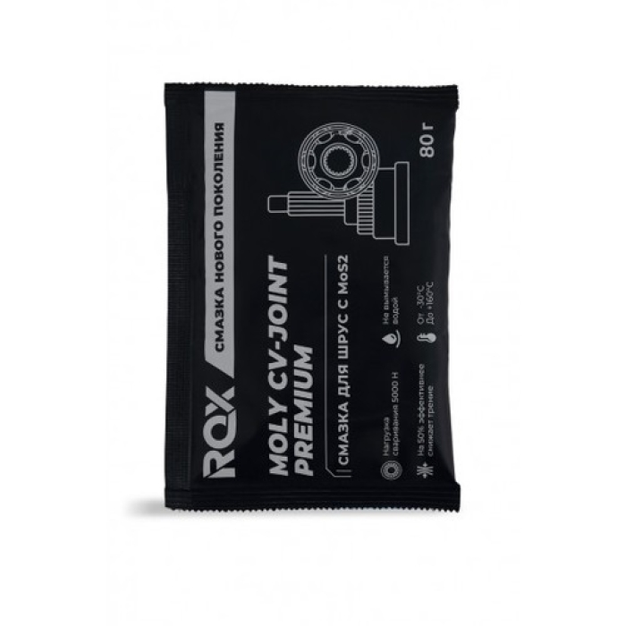Смазка для шарикового ШРУС Rox Premium Moly CV Joint Grease NLGI 2 80 гр представляет собой высокоэффективный смазочный материал на минеральной основе разработанный специально для шарниров равных угловых скоростей. Продукт содержит дисульфид молибдена и комплекс антирзиковочных присадок что обеспечивает превосходную противозадирную стойкость и надежную работу в условиях высоких нагрузок и повышенных температур. Смазка имеет серо-черный цвет и соответствует выявленным промышленным требованиям к смазочным материалам для автомобильной техники и промышленного оборудования.Подробнее
