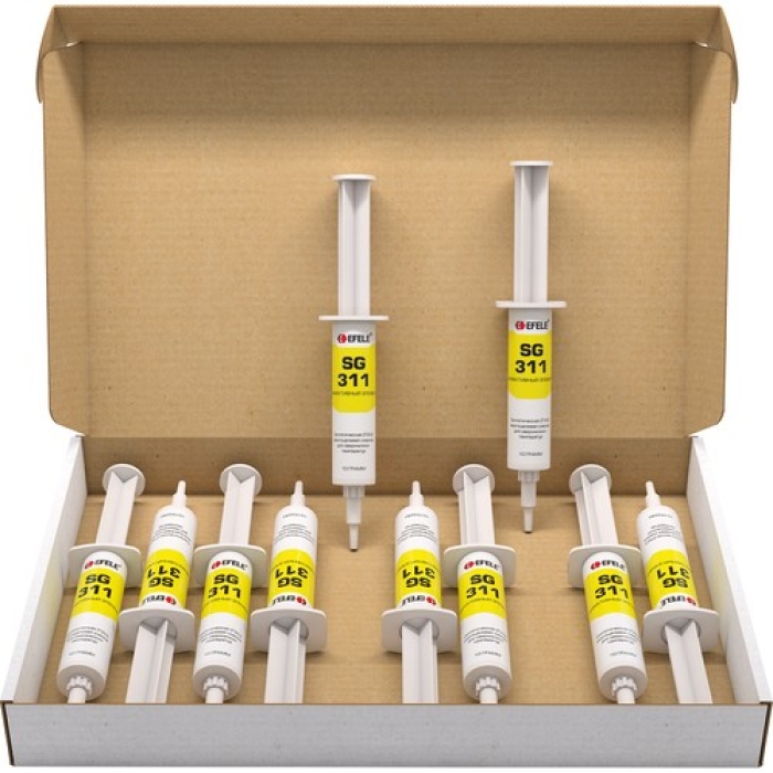 Смазка Efele SG-311 совместима с пластмассами и эластомерами, что делает ее универсальным решением для различных промышленных применений. Частичное заполнение объема дозатора смазками обусловлено их различной плотностью и предохранением от самопроизвольного выдавливания при нагревании.