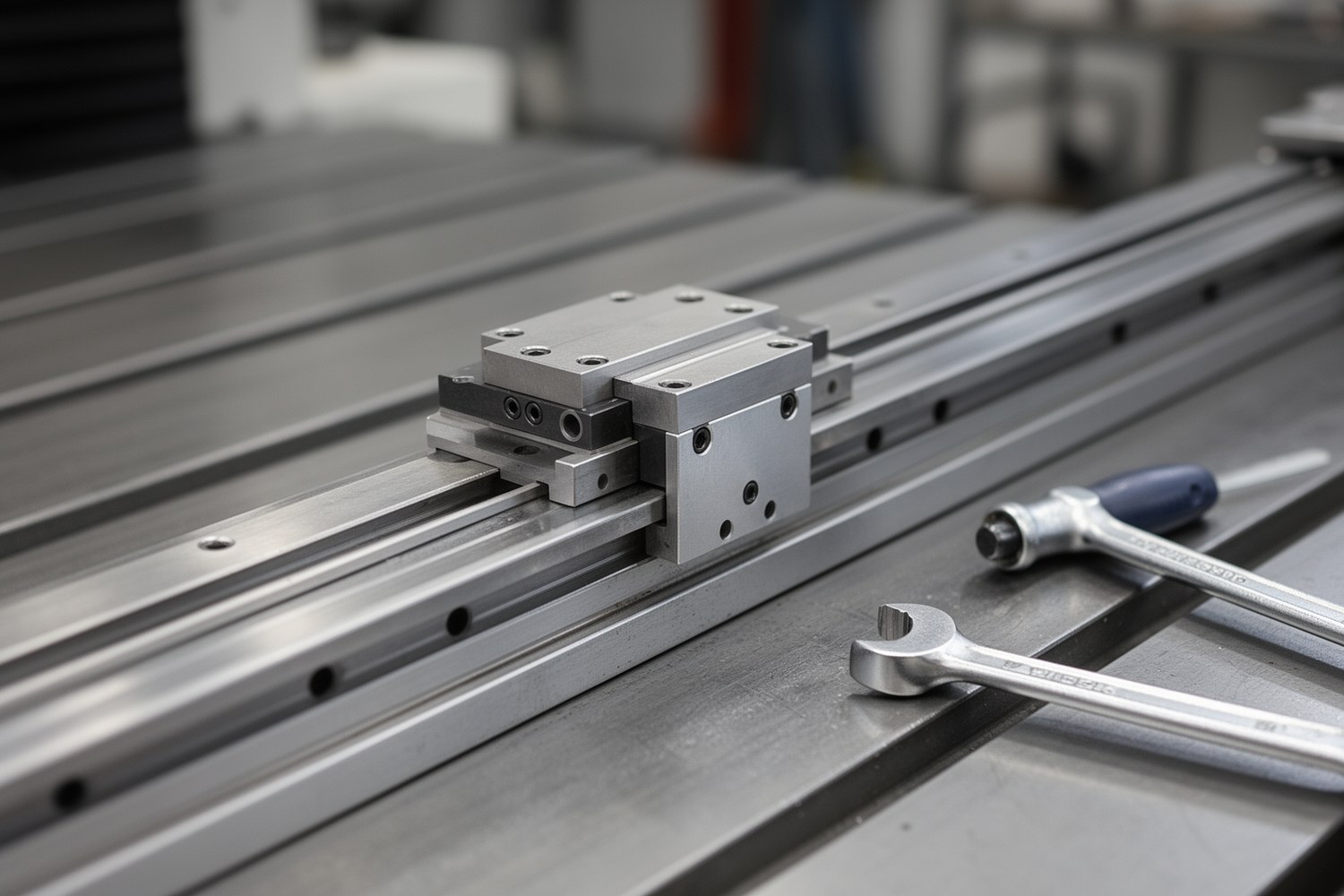 Для рельса контролируйте состояние дорожек качения, коррозию и отклонения геометрии. Для каретки оценивайте люфт, плавность хода, шум и локальный нагрев. Для уплотнений проверяйте целостность кромок и удержание смазки. Для крепежа контролируйте момент затяжки и признаки микросдвига.